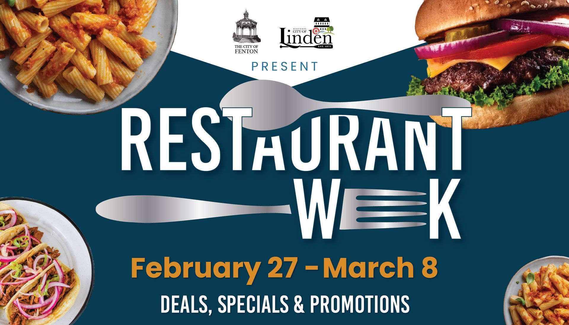 Savor the flavors of Fenton and Linden during Restaurant Week 2026! This exciting week-long celebration invites the community to dine local and support the incredible restaurants that make our area delicious. Whether you're craving a fresh new dining experience or sticking with your go-to favorite, you'll find exclusive deals, mouthwatering specials, and unbeatable promotions created just for this event. Don’t miss your chance to taste the best of the best—grab your friends and dig in!